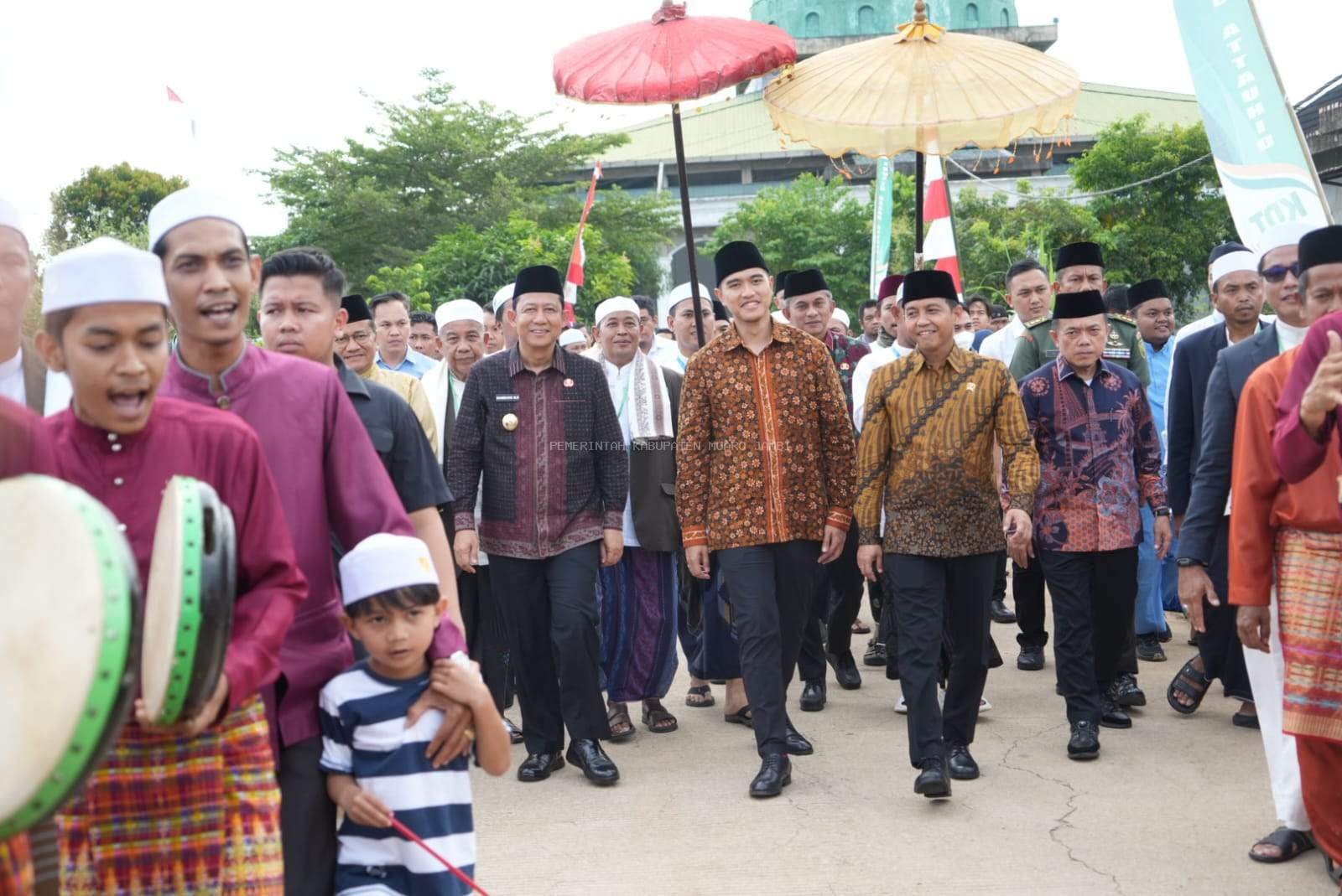 MATTANEWS.CO, MUARO JAMBI – Bupati Muaro Jambi, Bambang Bayu Suseno, S.P., M.M., M.Si., bersama Wakil Bupati Junaidi Mahir, menyambut kedatangan Menteri Lingkungan Hidup dan Kehutanan (LHK) Republik Indonesia, Raja Juli Antoni, dalam kunjungan kerja ke Pondok Pesantren Daaru Attauhid, Kecamatan Kumpeh, Rabu (25/06/2025).