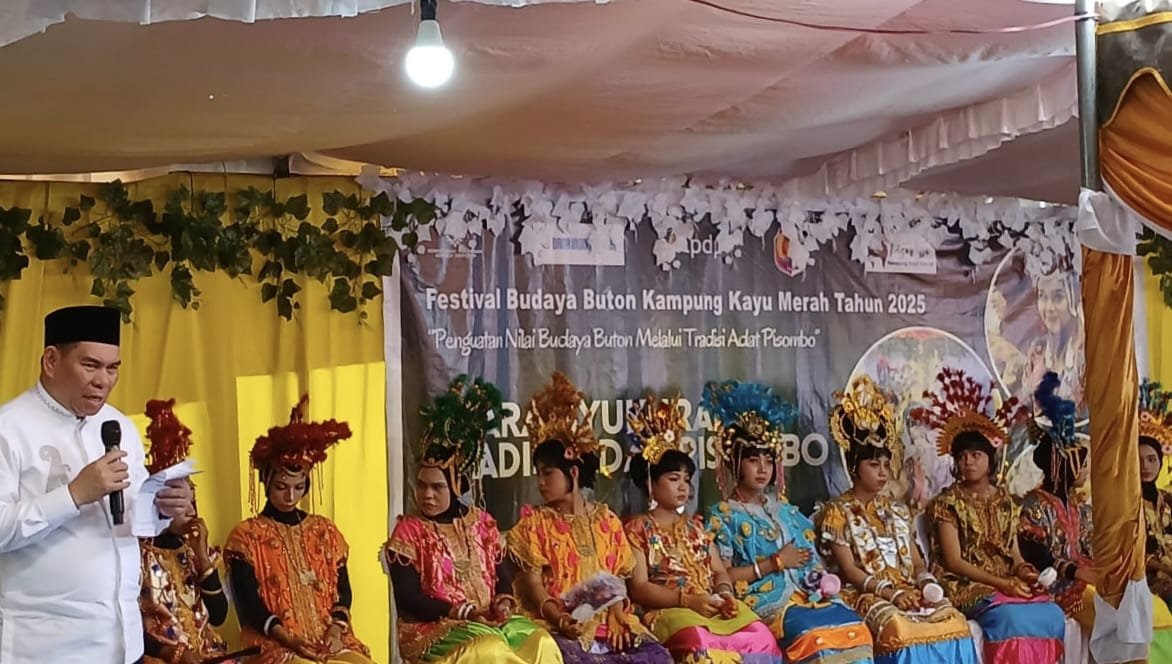 Diketahui, Bupati Samaun tiba di lokasi Festivas disambut dengan tarian Majangkara, seni bela diri khas Buton yang biasanya dipersembahkan untuk tamu kehormatan. Selain itu pula terdapat iringan rebana dari pemuda setempat mengantar Bupati menuju Aula Kampung Kayu Merah, tempat digelarnya Kegiatan tersebut.