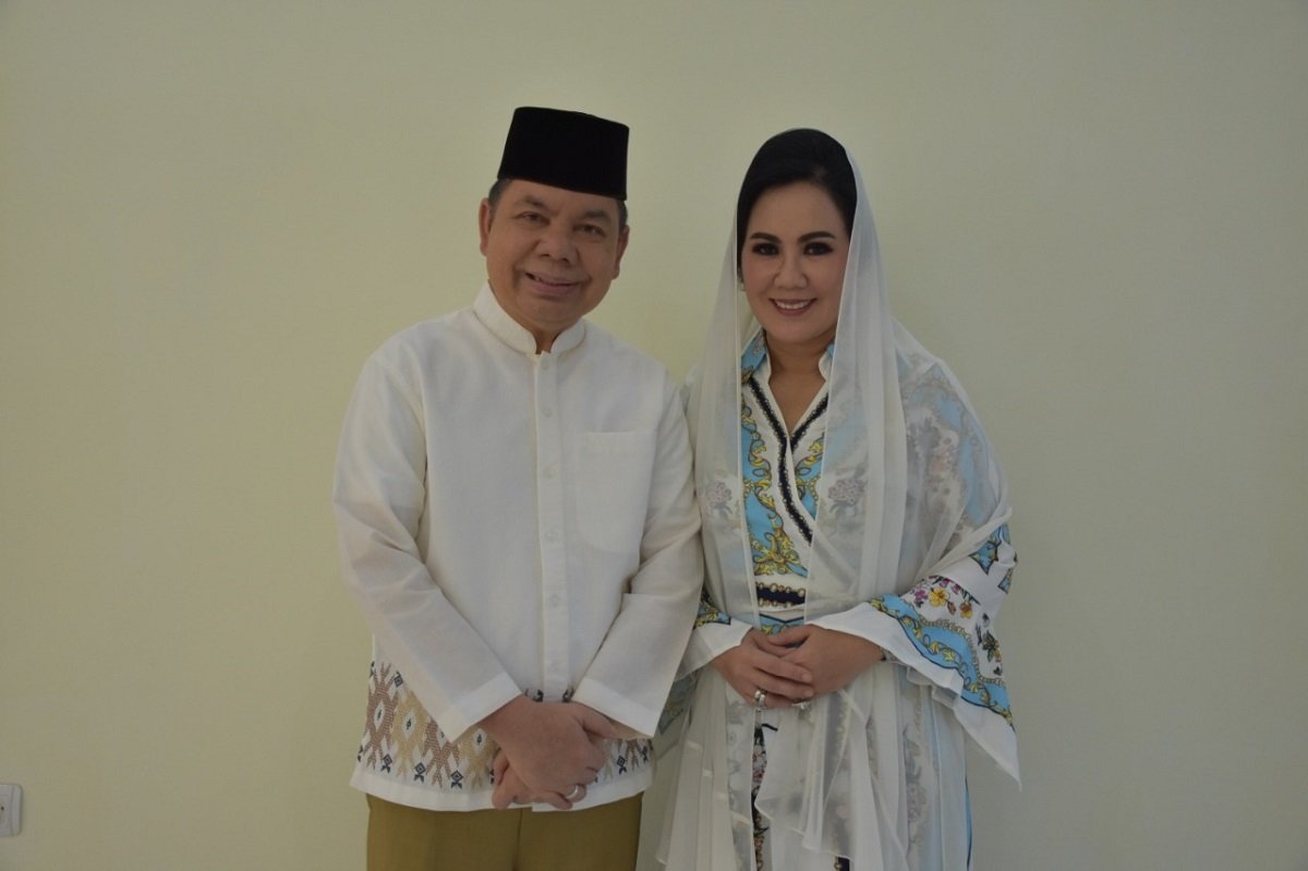 Bupati Kapuas Ir. Ben Brahim S. Bahat, MM, MT didampingi Ketua TP-PKK Kabupaten Kapuas Ary Egahni Ben Bahat, SH menyampaikan himbauan untuk Umat Muslim di Kabupaten Kapuas agar selalu mendekatkan diri kepada Allah SWT terutama di Bulan Suci Ramadhan dikediamannya, Selasa (21/4/2020) siang.