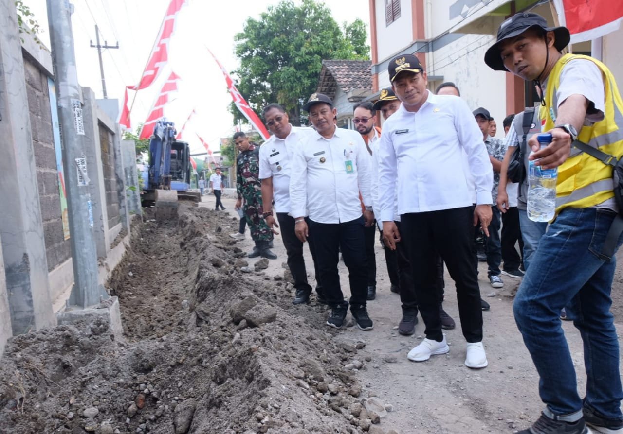 MATTANEWS.CO, SIDOARJO – Bupati Sidoarjo, Subandi melakukan inspeksi mendadak (sidak) pada proyek betonisasi di dua tempat sekaligus, Rabu (27/8/2025). Sidak pertama dilakukan pada betonisasi Jalan Bringinbendo Sidodadi, Desa Bringinbendo, Kecamatan Taman. Proyek betonisasi jalan sepanjang 2.250 meter dengan lebar 4 meter itu, saat ini telah masuk progres pengerjaan saluran U-Ditch di sisi kanan dan kiri.