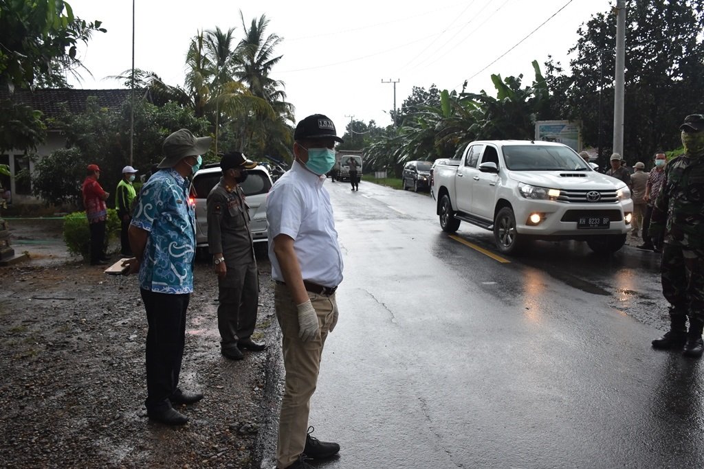 KUALA KAPUAS, Mattanews.co – Bupati Kapuas Ben Brahim S Bahat bersama Tim Satgas Covid-19 Kabupaten Kapuas meninjau Posko Satgas Covid-19 di Perbatasan Kalteng-Sel di Anjir Serapat Km 14 dan Kapuas – Pulang Pisau tepatnya di depan Kantor Desa Batu Nindan, Kecamatan Basarang Kabupaten Kapuas, Kamis (2/4/2020) Sore.