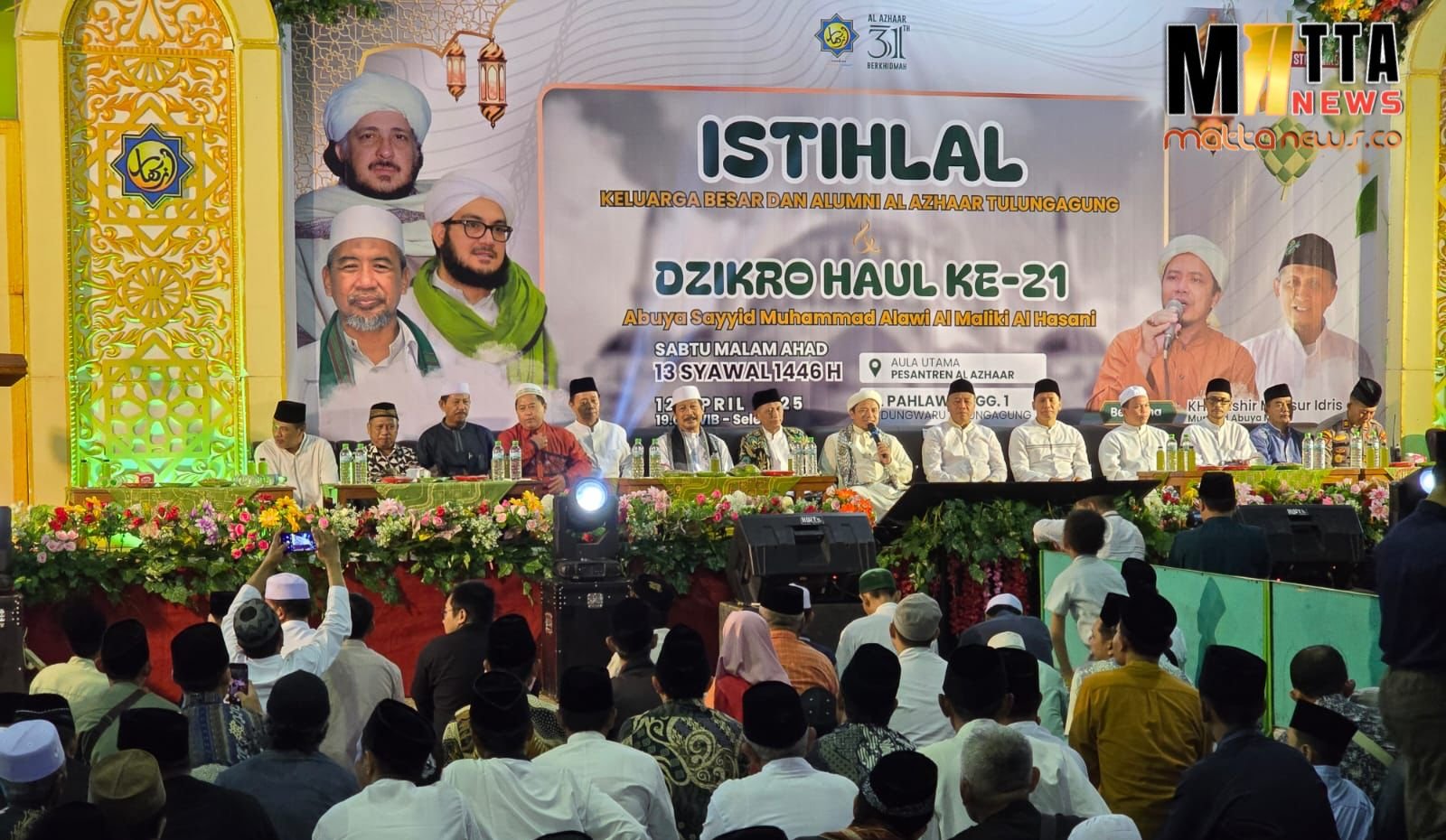 MATTANEWS.CO,TULUNGAGUNG– Bupati Tulungagung Provinsi Jawa Timur H. Gatut Sunu Wibowo, S.E., M.E., didampingi Wakil Bupati H. Ahmad Baharudin, S.M., menghadiri Haul Abuya Sayyid Muhammad Alawi Al-Maliki Al-Hasan sekaligus halalbihalal Lebaran 2025 di Pondok Pesantren (Ponpes) Al Azhaar Desa Kedungwaru, Kecamatan Kedungwaru setempat, Sabtu (12/4/2025) Malam.