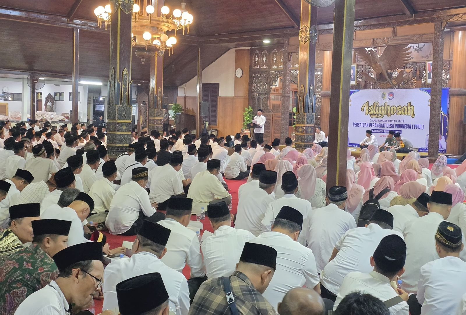 MATTANEWS.CO,TULUNGAGUNG- Bupati Tulungagung, Provinsi Jawa Timur, H. Gatut Sunu Wibowo, S.E., M.E., menghadiri acara Istighosah dan peringatan Hari Lahir (Harlah) Persatuan Perangkat Desa Indonesia (PPDI) ke-19 yang digelar di Pendopo Kongas Arum Kusumaning Bongso pada Senin (21/7/2025) Malam.
