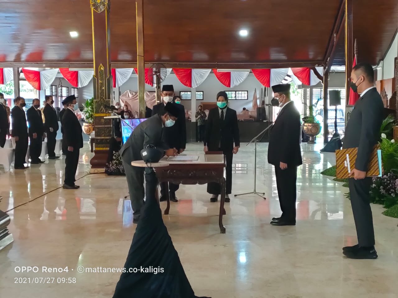 MATTANEWS.CO,TULUNGAGUNG -Pemerintah kabupaten Tulungagung melaksanakan pelantikan pejabat eselon III dan IV secara virtual bertempat di Pendopo Kongas Arum Kusumaning Bongso, Selasa (27/7/2021).