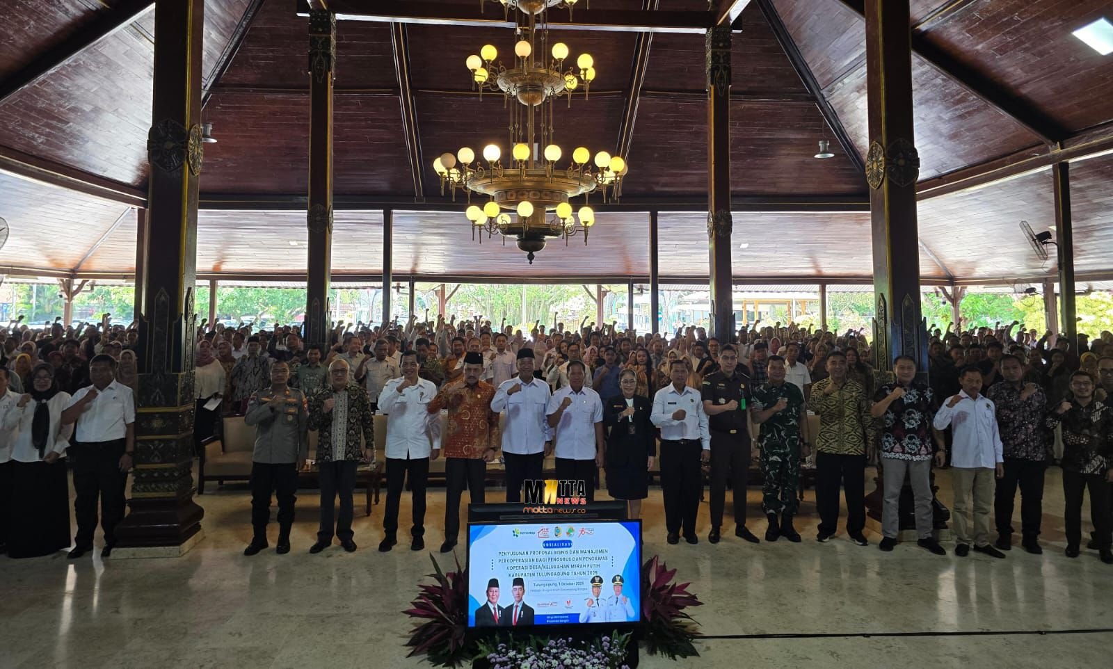 Hal itu Bupati Gatut Sunu sampaikan saat membuka Sosialisasi Penyusunan Proposal Bisnis dan Manajemen Perkoperasian bagi Koperasi Desa/Kelurahan Merah Putih (KDMP/KKMP) yang diinisiasi oleh Dinas Koperasi dan Usaha Mikro Kabupaten Tulungagung di Pendopo Kongas Arum Kusumaning Bongso, Rabu (1/10/2025).