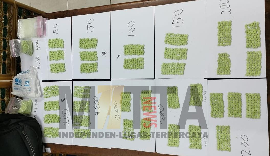 “Dari hasil penggeledahan, ditemukan 10 paket Pil Extasi warna hijau sebanyak 1750 butir dengan berat bruto 611,07 gram, beserta pecahan serbuk Pil Extasi dengan berat bruto 217,83 gram yang dibungkus dengan kantong kresek warna putih,” jelasnya.