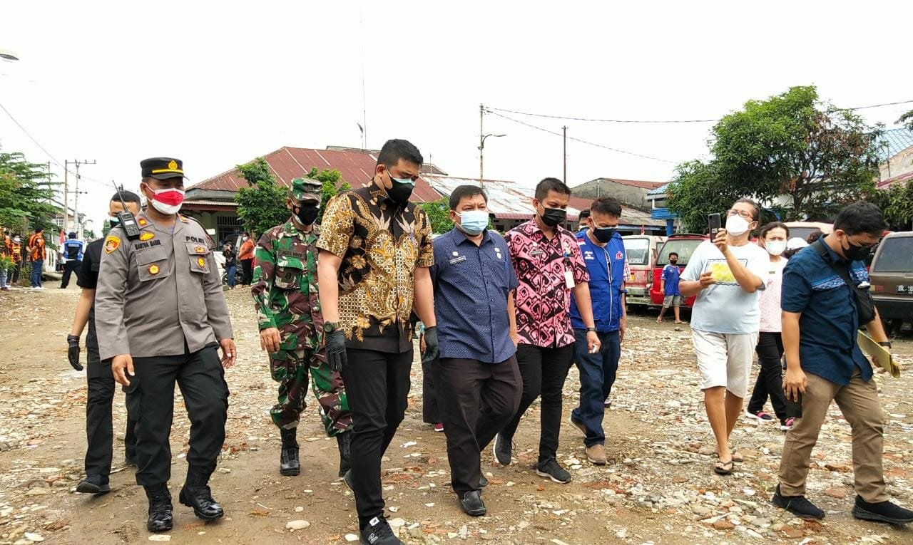 ATTANEWS.CO, MEDAN – Pelaksana Tugas (Plt) Camat Medan Tuntungan, Harry Tarigan mendampingi Wali Kota Medan, Bobby Nasution turun ke Lingkungan 23, Kelurahan Mangga, Kecamatan Medan Tuntungan yang kini sedang memberlakukan isolasi lingkungan, Kamis (5/8/2021).