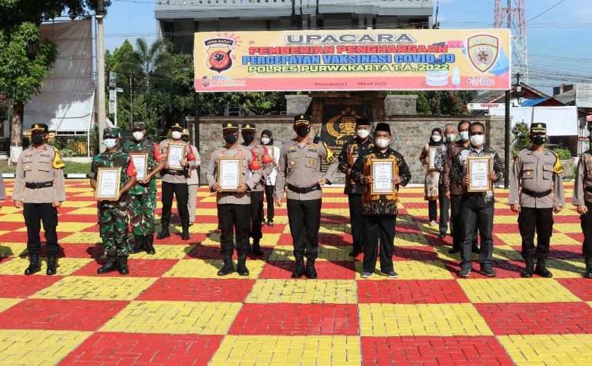 MATTANEWS.CO, PURWAKARTA – Kapolres Purwakarta, AKBP Suhardi Hery Haryanto memberikan apresiasi dan penghargaan kepada kecamatan yang telah melakukan percepatan capaian vaksinasi COVID-19 terbaik atau tertinggi.