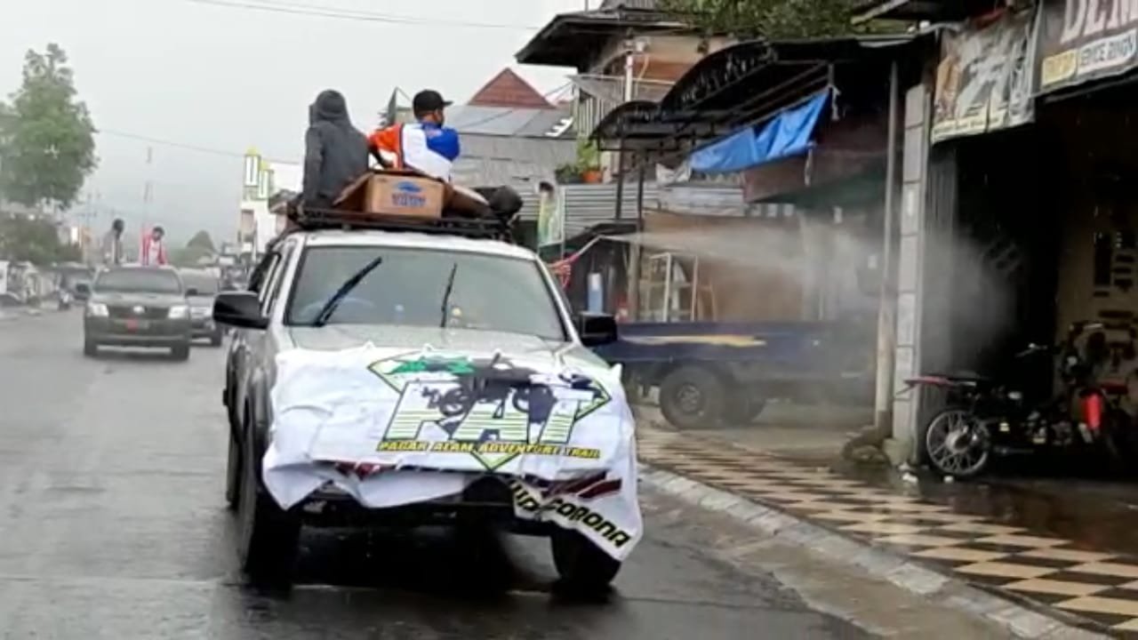 PAGARALAM, Mattanews.co – Komunitas Tim Pagaralam Adventure Trail (PAT), melakukan aksi peduli bertajuk Pagaralam Adventure Trail Peduli Corona, dengan melakukan penyemprotan Desinfektan di sepanjang jalan utama kota Pagaralam Sumatera Selatan (Sumsel), dalam rangka upaya pencegahan serta memutus mata rantai covid-19.