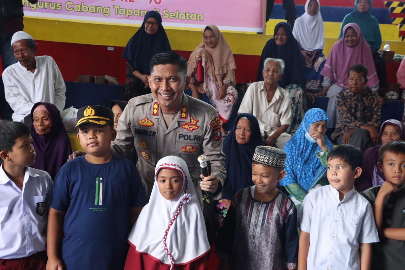 Setiba di Aula Margona Sopo Daganak, Kapolres dan rombongan, disambut oleh Forkopimca maupun Tokoh Masyarakat setempat dengan hangat. Bahkan, sosok perwira dengan melati dua emas di pundak itu tak ragu bercengkrama dan berfoto riang bersama anak-anak yang hadir pada kegiatan itu.