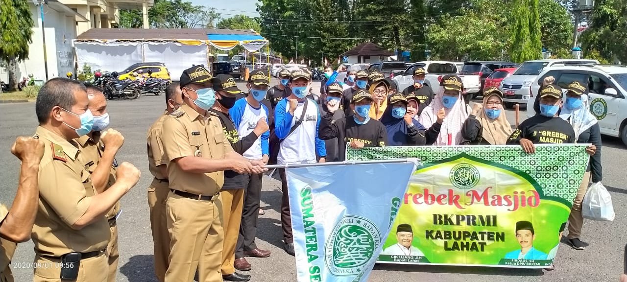 LAHAT,Mattanews.co- Puluhan Tim Gerebek Masjid, Dewan Pengurus Daerah Badan Komunikasi Pemuda Remaja Masjid Indonesia Kabupaten Lahat di lepas langsung Bupati Lahat Cik Ujang di lapangan Pemda Kabupaten Lahat Selasa (1/9/2020).