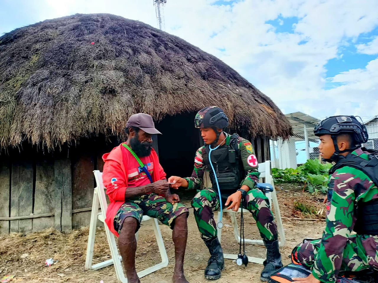 MATTANEWS.CO, KARUBAGA – Demi mewujudkan kehidupan masyarakat Papua yang sehat, Satgas Pamtas Yonif Raider 142/KJ terus berupaya laksanakan pengobatan dari rumah ke rumah atau honay ke honay, untuk masyarakat pegunungan papua yang jauh dari fasilitas kesehatan, baik rumah sakit maupun Puskesmas, bertempat di Distrik Wenam, Karubaga Kabupaten Tolikara, Papua, Rabu (29/06/2022)