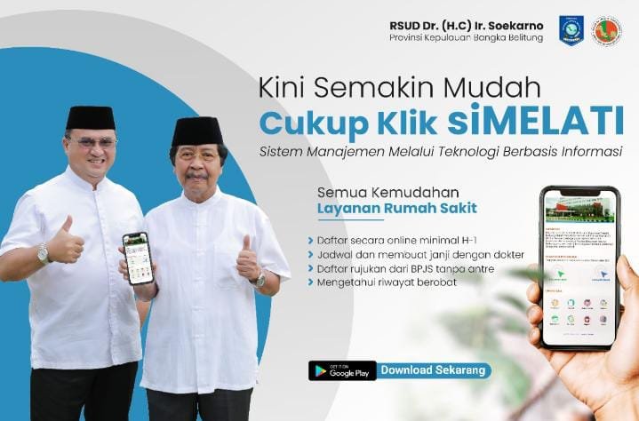 Melalui aplikasi siMelati, masyarakat bisa mendaftar secara online. siMELATI adalah singkatan dari Sistem Manajemen Teknologi Berbasis Informasi. Sistem ini merupakan layanan pendaftaran online yang memudahkan masyarakat mendaftar tanpa harus hadir di RSUD Dr. (H.C.) Ir. Soekarno Hatta, yg merupakan akselerasi inovasi layanan Sistem Informasi Manajemen Rumah Sakit (SIMRS) di RSUD Dr. (H.C.) Ir. Soekarno Hatta Provinsi Kepulauan Bangka Belitung (Babel).