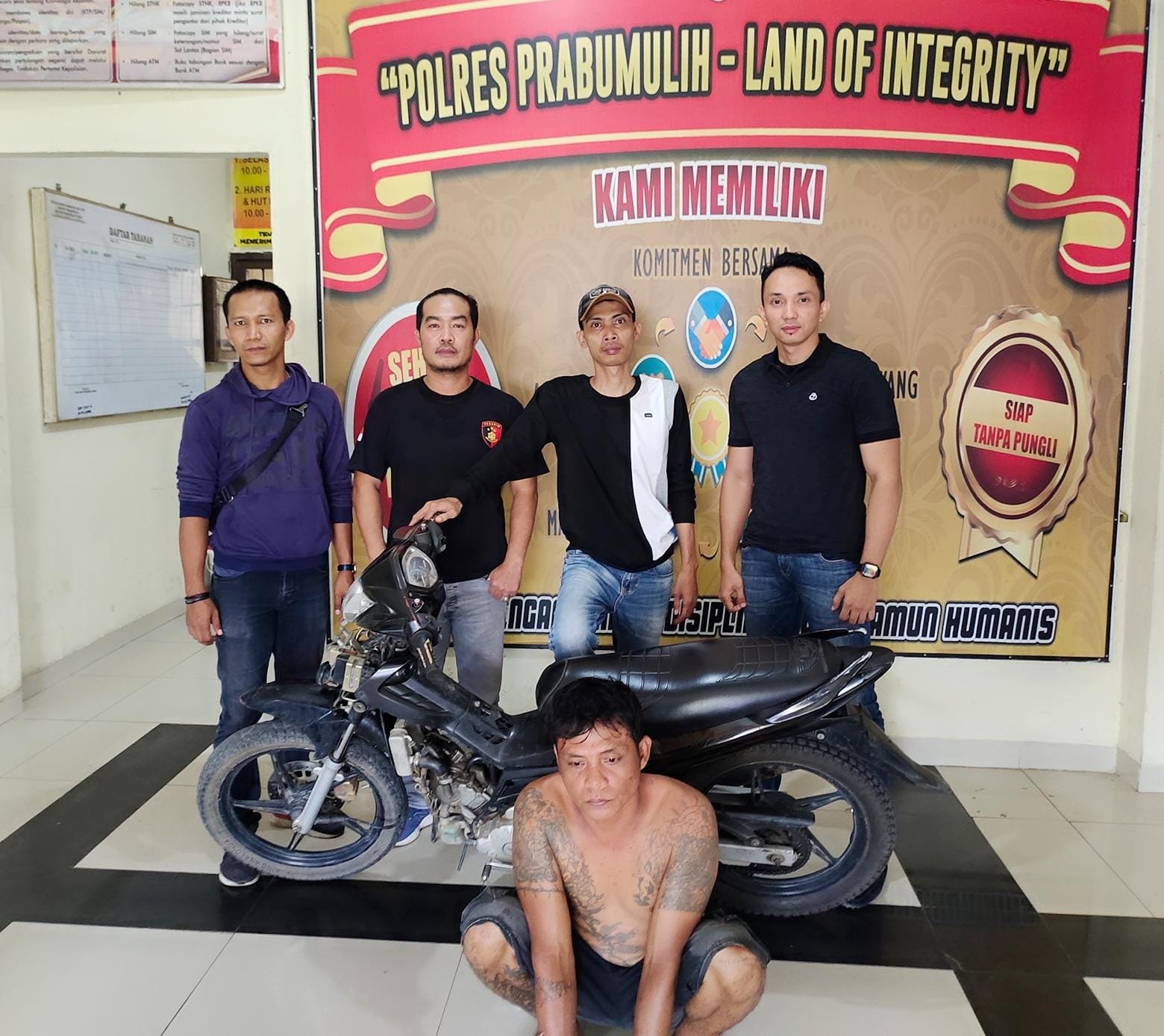 MATTANEWS.CO, PRABUMULIH – YS alias Yusuf Kudel (43) melehoi terduduk lesu kala dibelenggu Tim Opsnal Polsek Prabumulih Timur Polres Prabumulih. Pasalnya, pria bertato warga Lorong Lematang Kelurahan Pasar Kecamatan Prabumulih Utara ini telah melakukan tindak pidana pencurian dengan pemberatan.