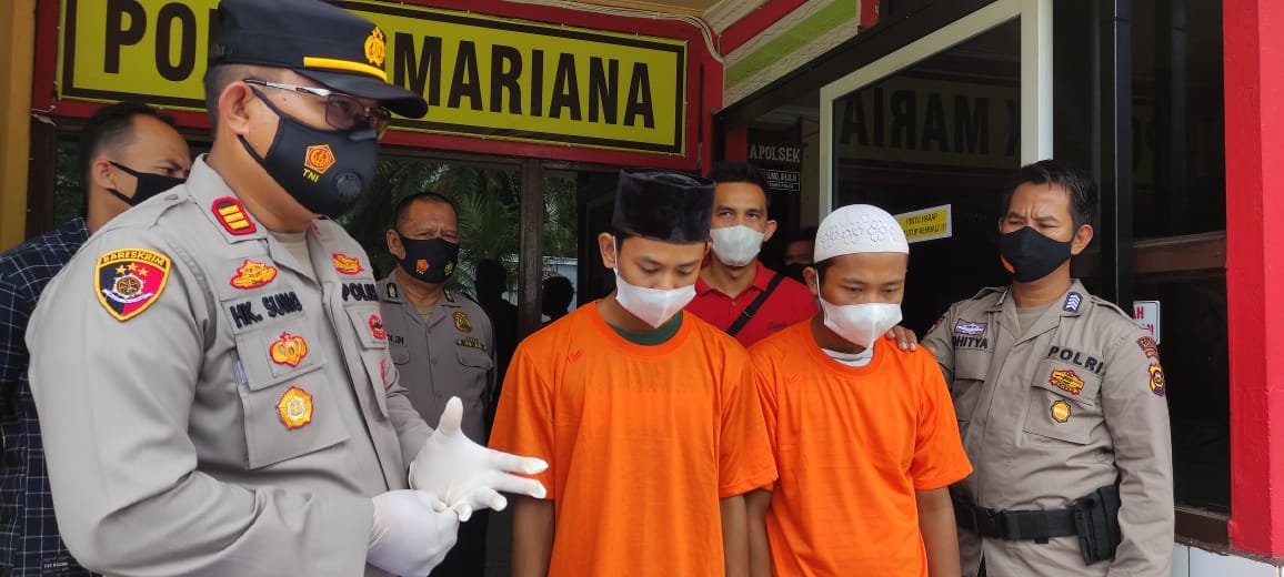 Penangkapan kedua tersangka berawal dari informasi yang diterima petugas tentang keberadaannya. Dipimpin Kanit Reskrim Polsek Mariana, Ipda Abu Bakar, keduanya ditangkap di tempat persembunyian di daerah Banyuasin, tanpa perlawanan.