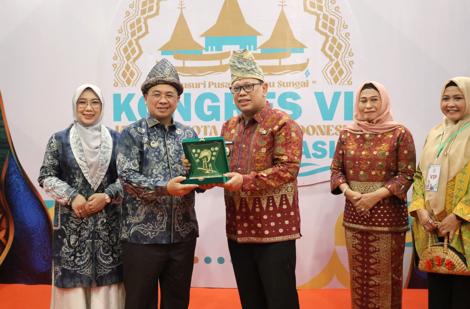 Pertukaran cendera mata itu di rangkaian acara Malam Anugerah Jaringan Kota Pusaka Indonesia (JKPI) Award, Kamis malam (19/9/2024) di Ballroom Calamus, Hotel Rattan, Banjarmasin.