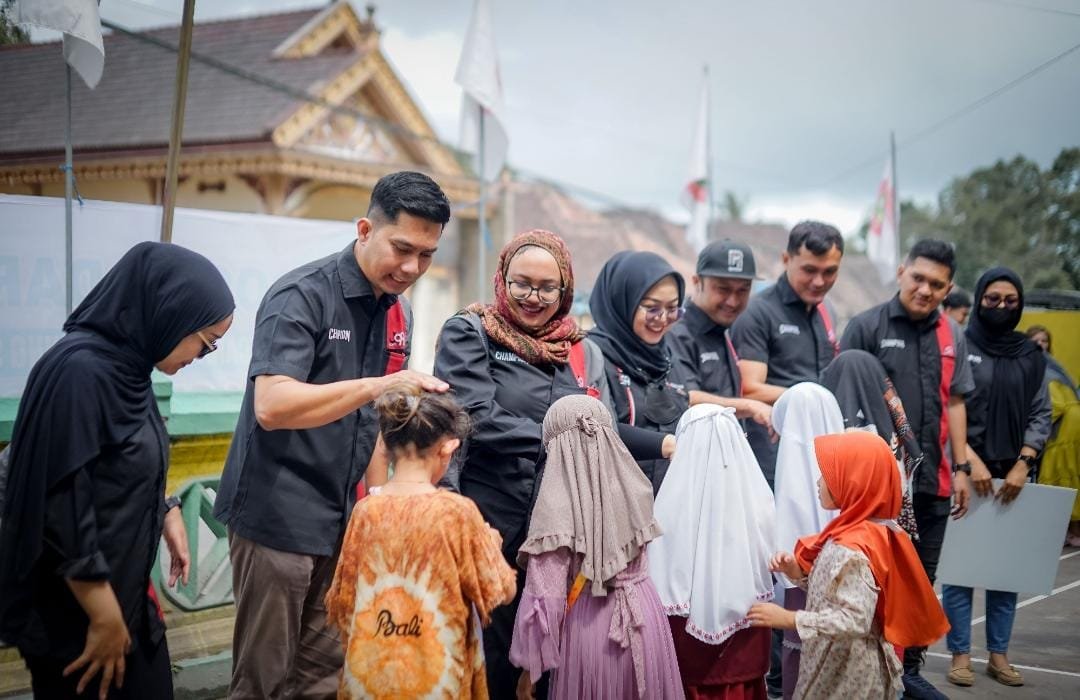 Maka dari itu tim J99 People Humanity Squad juga membantu memberikan baju-baju muslim kepada semua siswa yang terdampak.