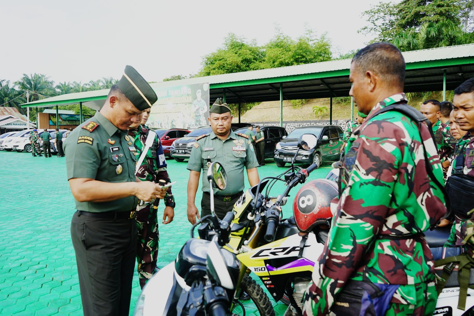 “Pengecekan dan pemeriksaan administrasi kelengkapan kendaraan dinas jenis Honda CRF yang baru, Thunder dan kendaraan pribadi R-2 serta R-4,”ucap Kamandan Kodim 0117 Aceh Tamiang.