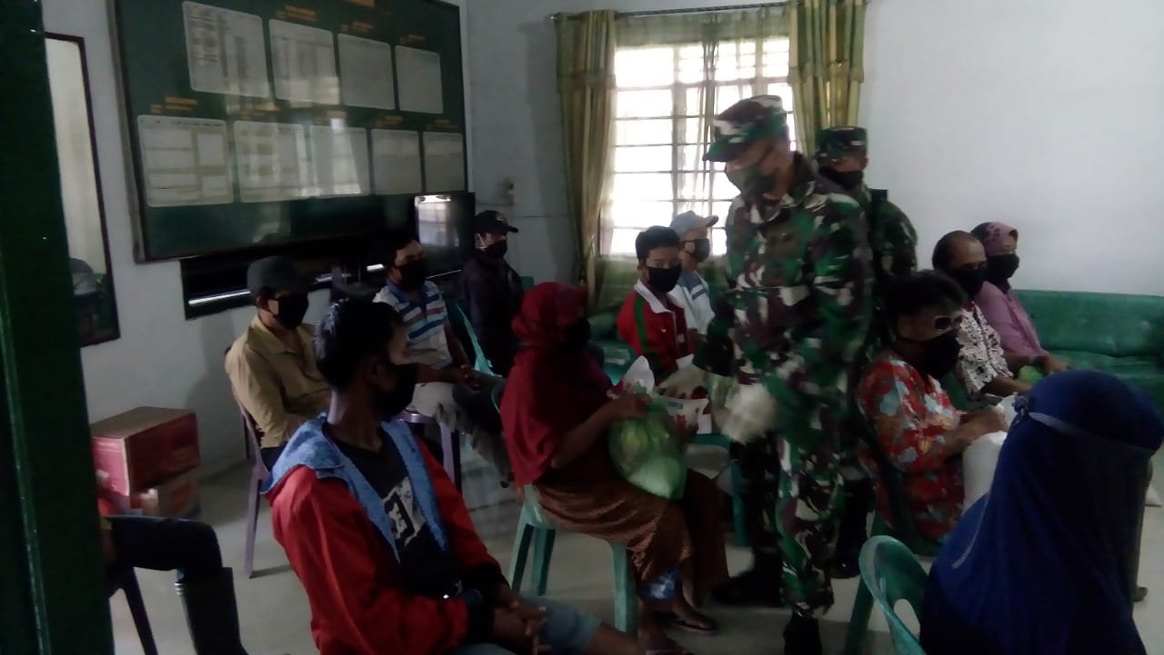 “Seperti yang saat ini dilakukan Babinsa 07/PB Serka Fauzan Munir memberikan bantuan paket sembako berupa beras, mie instan, gula dan minyak goreng kepada sejumlah warga,” terangnya.