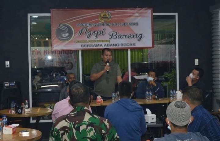 Tanpa ada sekat, Dandim berbincang hangat dengan sejumlah Abang Becak pada pertemuan bertajuk “Ngopi Bareng” yang dilaksanakan di Five & Co Coffee di Jalan Kenanga Kota Padangsidimpuan itu. Suasana kekeluargaan, menambah hangat pertemuan antara sosok pimpinan TNI dengan rakyatnya.