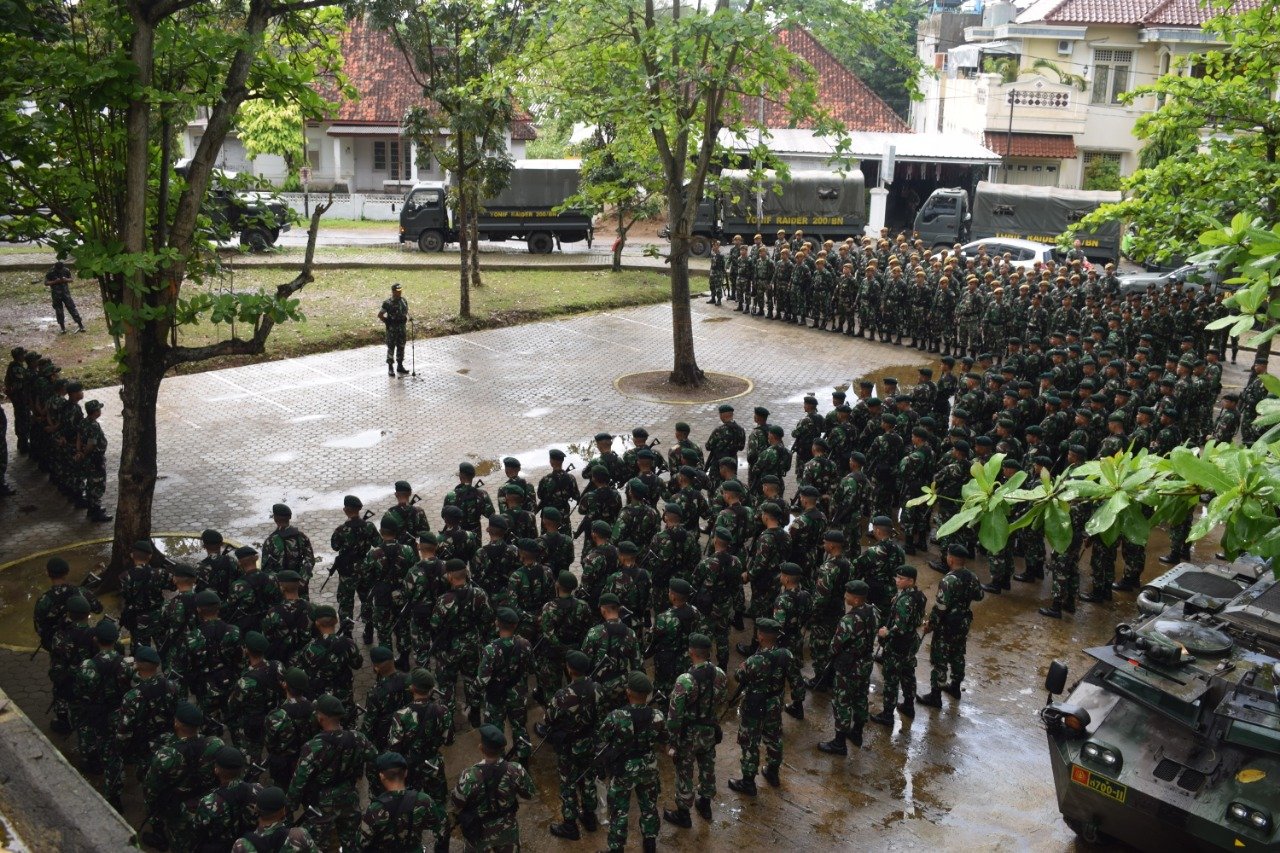 PALEMBANG, Mattanews.co – Komandan Kodim 0418/Palembang Letkol Inf Honi Havana, M.MDS. memimpin apel pengecekan pengamanan pemilu 2019 bertempat di halaman Kolam Renang Garuda Jln. Hang Tuah Kota Palembang dengan jumlah peserta apel sebanyak 333 orang prajurit dari Kodim 0418/Palembang, Yonif Raider 200/BN, Yonarhanudri-12/SBP dan Kompi Kavaleri 5/GCC, serta dua unit Kendaraan Rantis jenis Anoa Kavaleri, Selasa (16/04/2019).