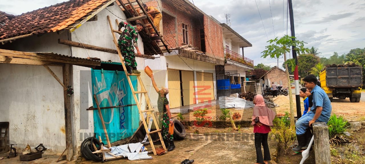 “Saya selaku Danramil bersama Babinsa bergerak cepat mengajak warga bergotong royong untuk membersihkan rumah warga yang terkena angin puting beliung dan rasa empati kepada warga yang sedang terkena musibah bencana alam angin puting beliung,” terangnya.