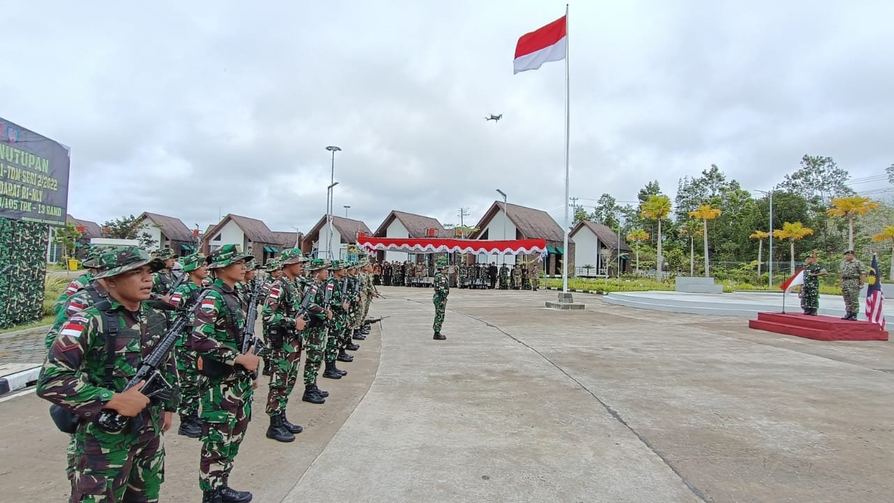 MATTANEWS.CO,KAPUAS HULU – Dankolakopsrem 121/Abw Brigjen TNI Pribadi Jatmiko melaksanakan Upacara Penutupan Patroli Terkoordinasi (PATKOR) Seri 2 Tahun 2022 di PLBN Nanga Badau, Kapuas Hulu, Kalimantan Barat, Kamis (1/12/2022).