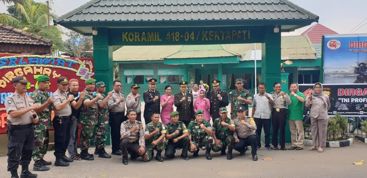 Kedatangan rombongan personil Kepolisian Republik Indonesia (Polri) yang dipimpin dipimpin Kapolsek SU I Kompol Mayestika Hidayat, SIK di Markas Koramil untuk memberi Ucapan Selamat HUT TNI Ke-74 kepada jajaran Koramil 418-04/Kertapati tersebut disambut hangat Danramil 418-04/Kertapati Mayor Inf AR. Adriansyah DP SH dan jajaran.