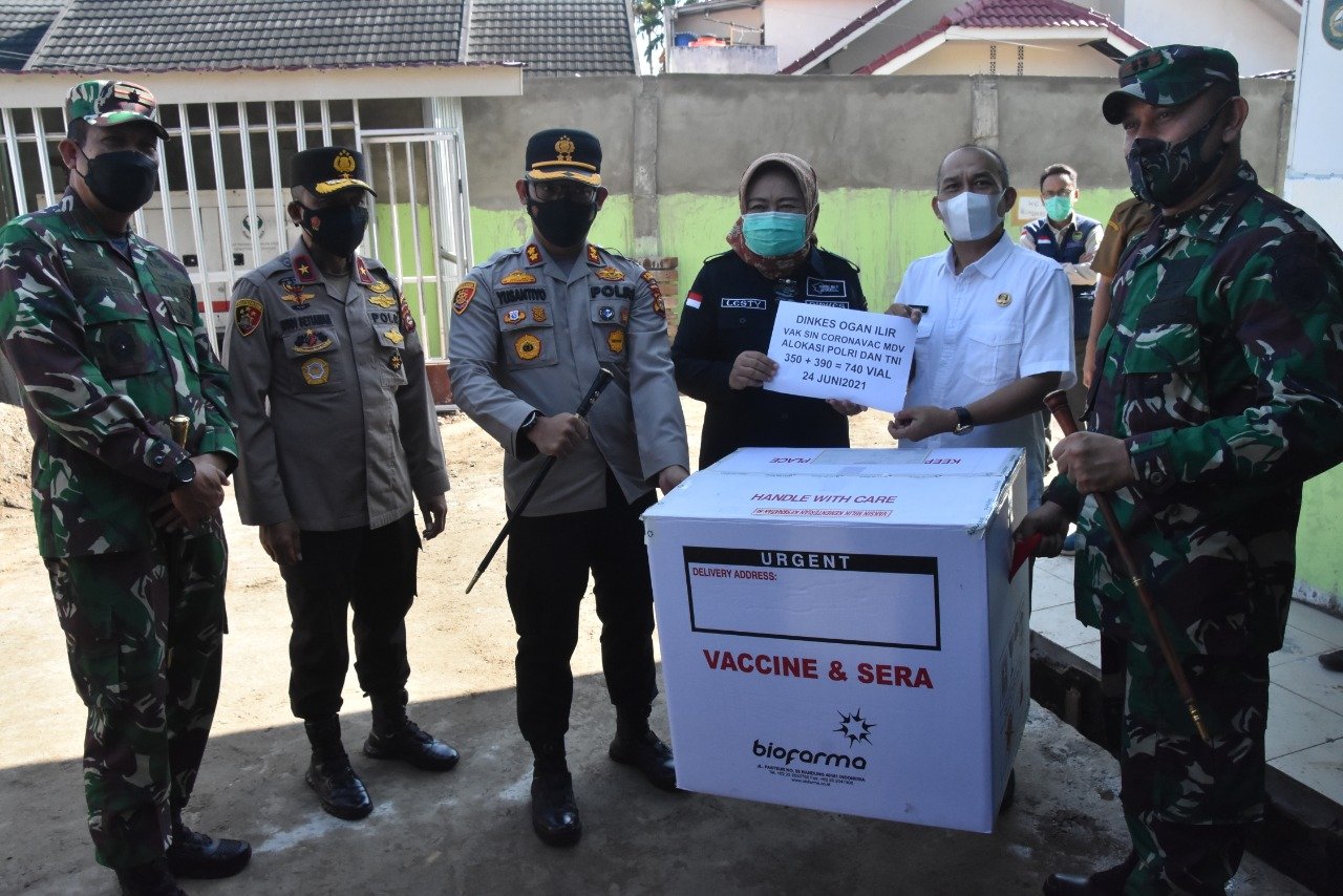 Kegiatan Penyerahan Vaksin Sinovac secara simbolis dari Dinkes Prov Sumsel kepada Korem 044/Gapo dan Polda Sumsel TNI sebanyak 6.180 Vial dan Polri sebanyak 6.180 Vial dilanjutkan pembagian Vaksin Kab/Kota Prov Sumsel.