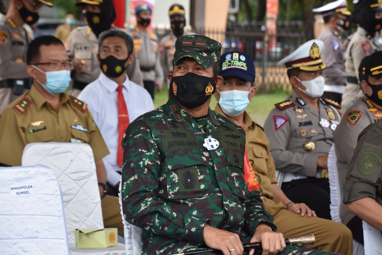 PALEMBANG, Mattanews.co – Komandan Korem (Danrem) 044/Gapo, Brigjen TNI Jauhari Agus Suraji mengikuti apel gelar pasukan Operasi Lilin Musi 2021, di Lapangan Olahraga Pakri (Stadion Wira Bhakti), Jalan Jendral Bambang Utoyo Kelurahan Duku Kecamatan Ilir Timur II Palembang, Senin (21/12/2020).