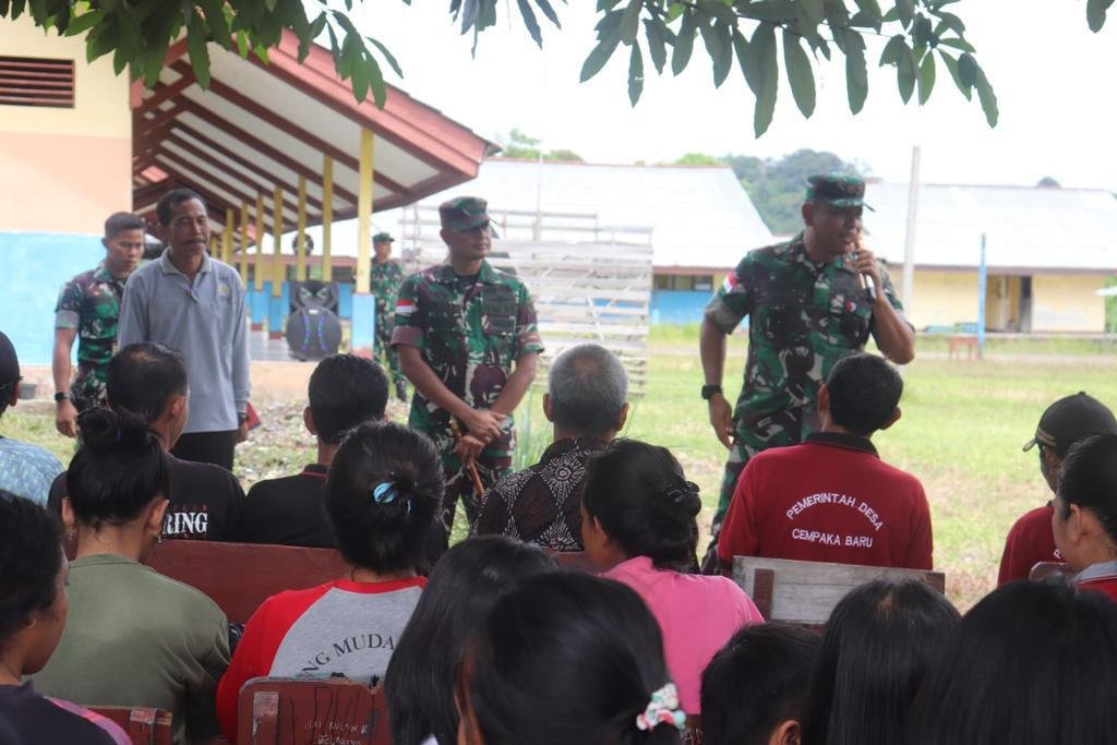 MATTANEWS.CO,KAPUAS HULU – Danrem 121/Alambhanawanawai Brigjen TNI Luqman Arief S.I.P., didampingi Dandim 1206/Putussibau Letkol Inf Nasli S.Sos., bersama Kasiter Korem 121/Abw Kolonel Inf Mordechai Triyandono memberikan wawasan kebangsaan kepada masyarakat di Desa Cempaka Baru, Kecamatan Putussibau Selatan, Kabupaten Kapuas Hulu, Jum’at (12/01/2024).