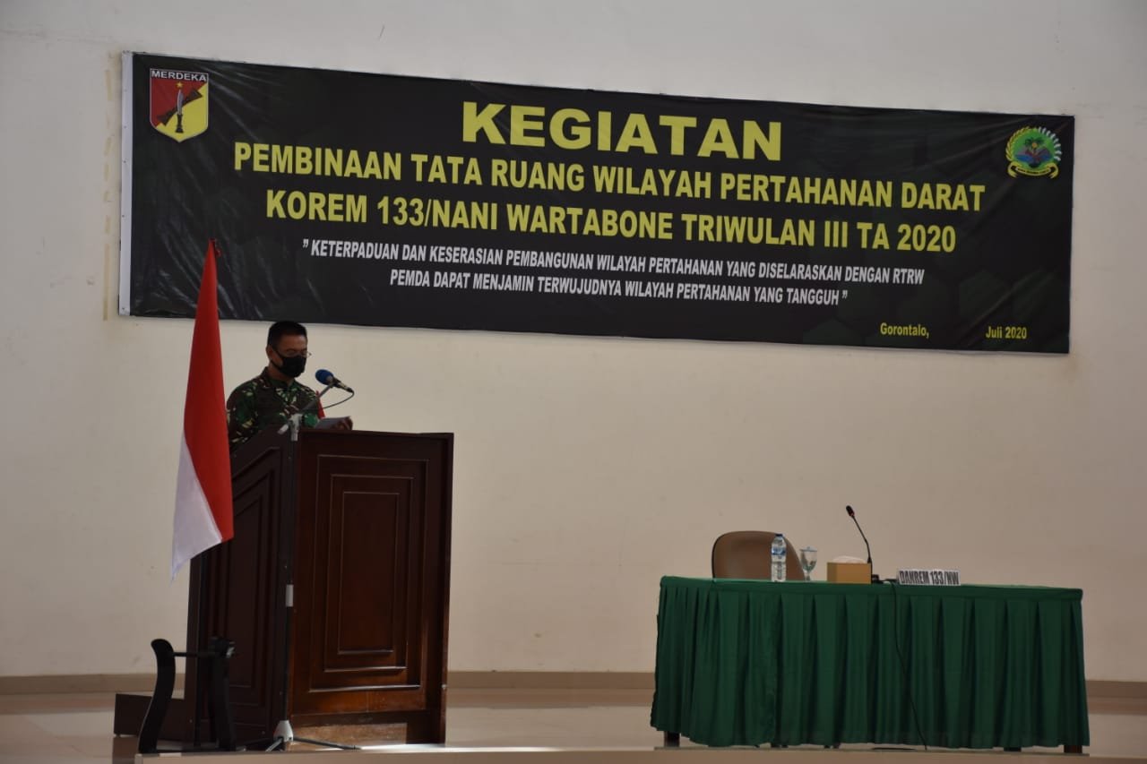 Danrem 133/NWB Brigjen TNI Bagus Antonov Hardito MA yang membuka secara langsung kegiatan tersebut dalam sambutan tertulis mengatakan selamat datang di Makorem 133/Nani Wartabone kepada Kabid Tata Ruang Provinsi Gorontalo, Bapak Sultan Kalupe, S.T.,M.T. selaku Pemateri, semoga dengan adanya kegiatan ini, dapat menciptakan pembinaan tata ruang wilayah pertahanan darat yang serasi, selaras dan terpadu dengan tata ruang wilayah Provinsi/Kabupaten/Kota.