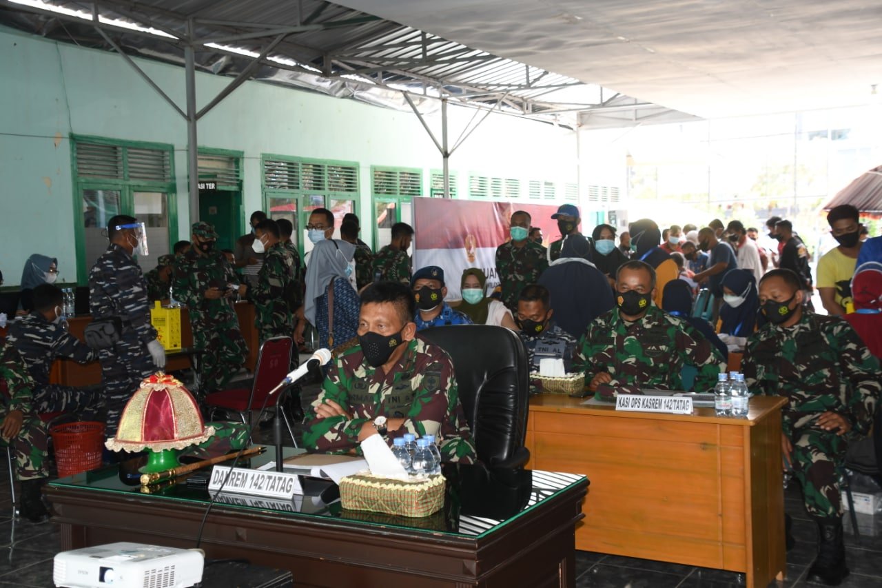 Kepada awak media Danrem 142/Tatag Brigjen TNI Firman Dahlan, S.I.P mengatakan, serbuan vaksinasi yang dilaksanakan hari ini oleh TNI, yakni TNI AD, TNI AL dan TNI AU untuk memutus rantai penularan covid 19.