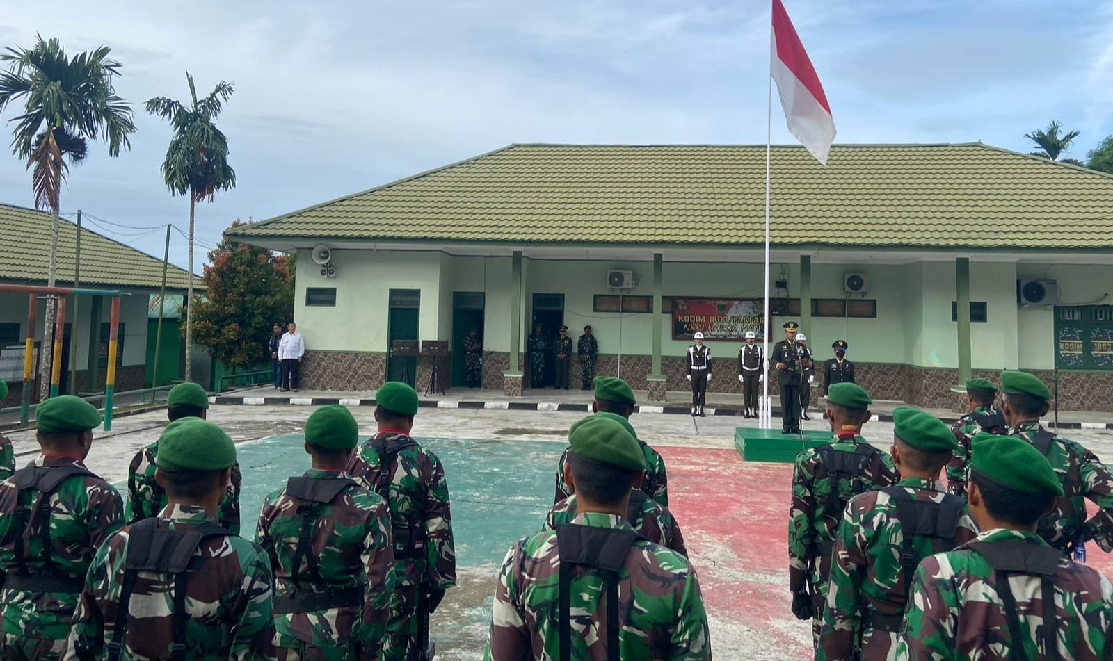Usai upacara seluruh prajurit Korem 182/Jo dan Kodim 1803/Fakfak menyaksikan Upacara Peringatan Hari Lahir Pancasila secara Daring di Aula Makodim 1803/Fakfak.
