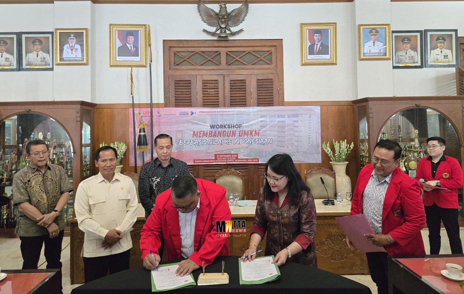 MATTANEWS.CO,TULUNGAGUNG- Usaha Mikro, Kecil, dan Menengah (UMKM) kembali ditegaskan sebagai tulang punggung ekonomi Indonesia. Hal ini disampaikan Dekan Fakultas Hukum Universitas 17 Agustus 1945 (Untag) Surabaya, Dr. Yovita Arie Mangesti, S.H., M.H., CLA, CMC, dalam Workshop Membangun UMKM Berbasis Nilai Keindonesiaan yang digelar di Pendopo Kongas Arum Kusumaning Bongso, Tulungagung, Sabtu (13/9/2025).