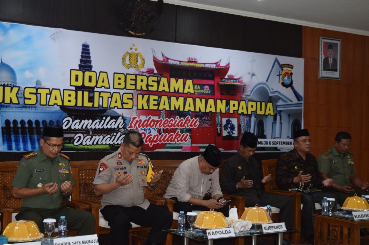 SULAWESI BARAT, Mattanews.co – Untuk perdamaian di Papua, Kepolisian Daerah Sulawesi Barat kembali menggelar Doa bersama. Jika sebelumnya doa bersama ini dilakukan bersama TNI/POLRI dan Kementrian Agama di Masjid Jabal Rahma. Polda Sulbar menggelar kegiatan serupa bersama seluruh elemen masyarakat.