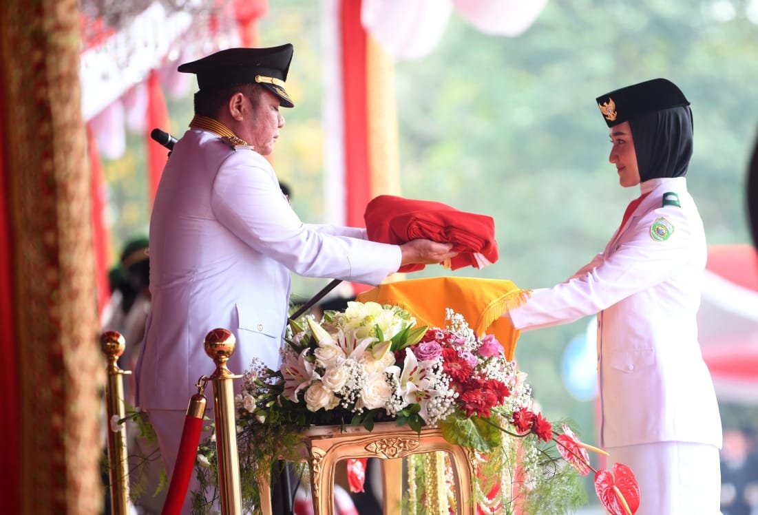 MATTANEWS.CO, PALEMBANG – Gubernur Sumatera Selatan (Sumsel), Herman Deru bertindak sebagai Inspektur Upacara (Irup) peringatan ke-78 hari kemerdekaan Republik Indonesia (RI) tahun 2023 di Griya Agung, Kamis (17/8) pagi. Peringatan HUT RI dimulai dengan pengibaran sang saka merah putih oleh pasukan pengibar bendera Provinsi Sumsel. Dilanjutkan dengan pembacaan teks UUD 1945 oleh Ketua DPRD Sumsel, RA Anita Noeringhati.