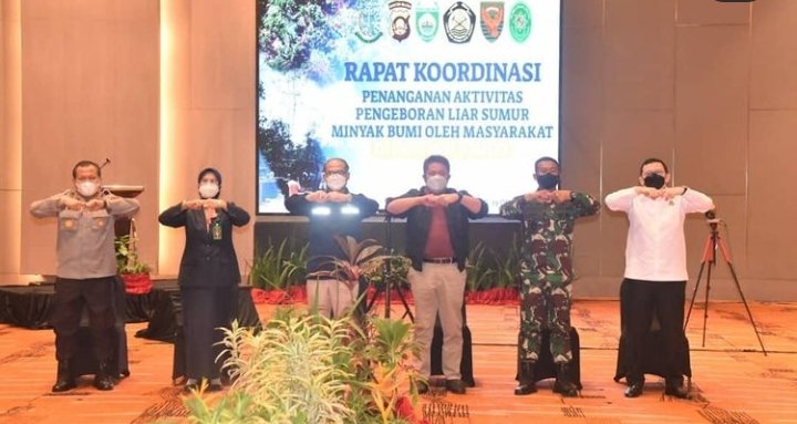 MATTANEWS.CO, PALEMBANG – Rapat Koordinasi (Rakor) penanganan aktivitas pengeboran liar sumur minyak bumi oleh masyarakat di Provinsi Sumatera Selatan (Sumsel) yang di gelar Polda Sumsel di Hotel Novotel Palembang, Selasa (19/10/2021).