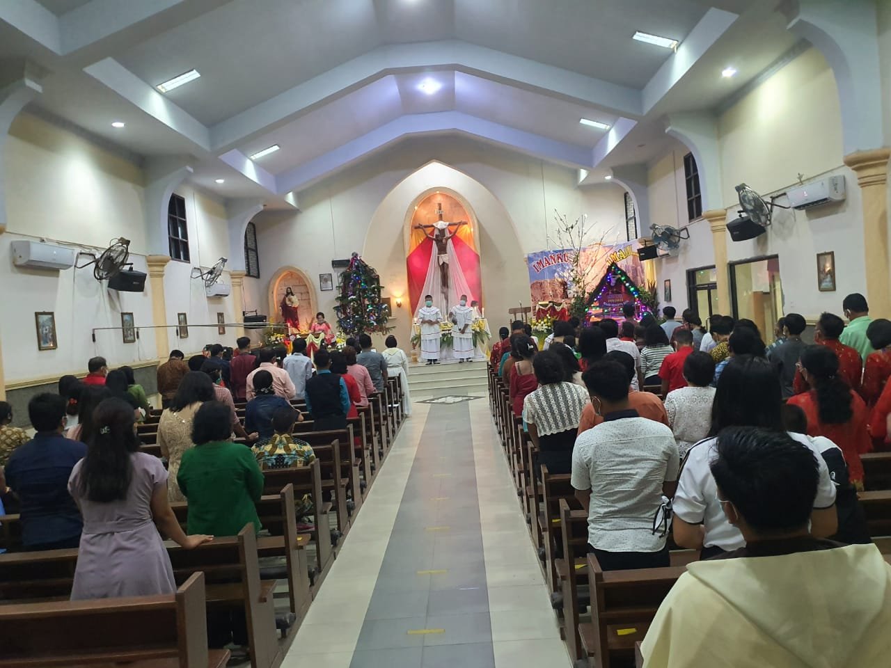 ASAHAN, Mattanews.co – Perayaan Natal di Gereja Katolik Paroki Sakramen Maha Kudus Kisaran. Jl. Hamka No. 6 Kisaran, tetap berlangsung hikmat dan aman walaupun masa Covid-19.
