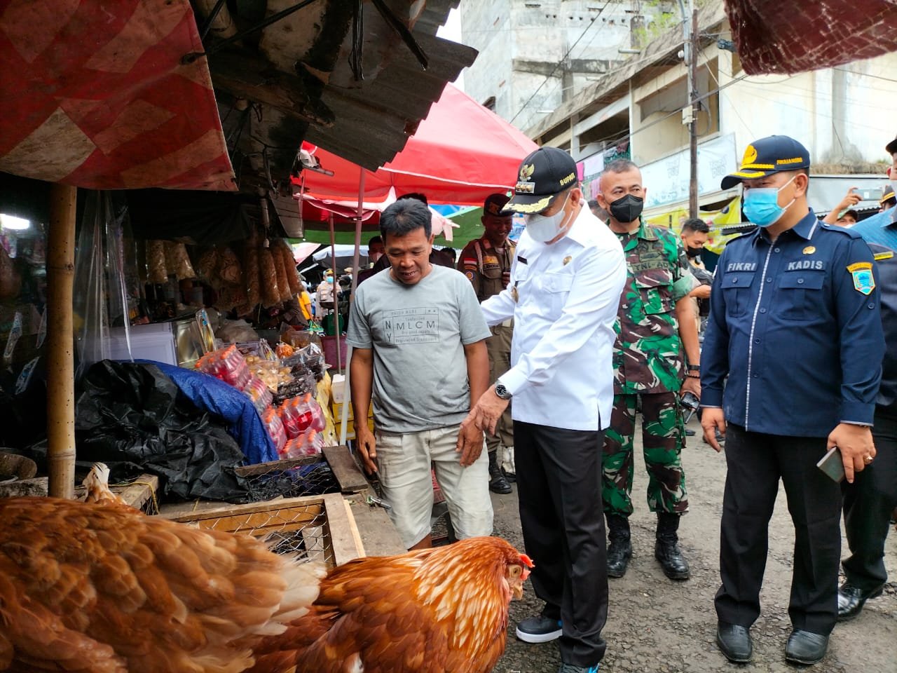 MATTANEWS.CO, LAHAT – Jelang perayaan hari raya idul Fitri 1 Syawal 1443 Hijriah, Selasa (26/04/2022) Bupati Lahat Cik Ujang SH beserta Jajaran Unsur Forkompinda Lahat serta yang mewakili pantau secara langsung harga dan stock barang pokok penting di kawasan pasar PTM dan Pasar Lematang Lahat.