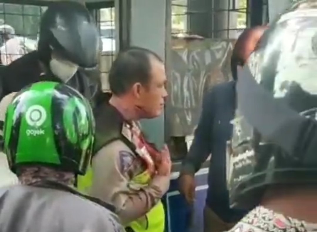 MATTANEWS.CO, PALEMBANG – Diduga teroris, masuk menggegerkan Kota Palembang. Aksi coboy inipun viral di media sosial. Dalam aksinya ini, pelaku nampak menyerang anggota Satlantas Polrestabes Palembang, Bripka Ridho, saat bertugas di Pos Polisi Sekip Ujung. Akibatnya, anggota tersebut mengalami luka dibagian pelipis, tangan. Oleh warga, korban dievakuasi ke RS Hermina untuk mendapatkan pengobatan. Sementara, pelaku penusukan sendiri sudah diamankan anggota Jatanras Polda Sumsel dan langsung dijemput Densus 88 Mabes Polri, Jumat (4/6/2021).