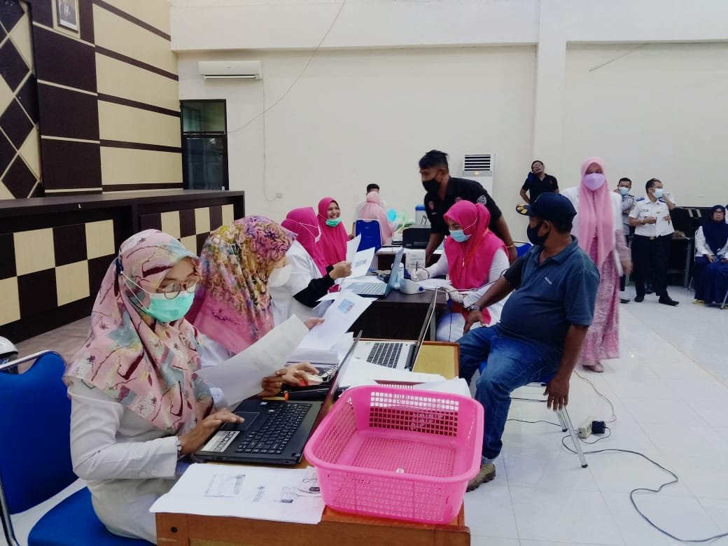 MATTANEWS.CO, ACEH TAMIANG – Dinas Perhubungan Kabupaten Aceh Tamiang berkerjasama Puskesmas Karang Baru menggelar vaksinasi Corona Virus Nineteen (Covid-19), Selasa (13/7/2021).