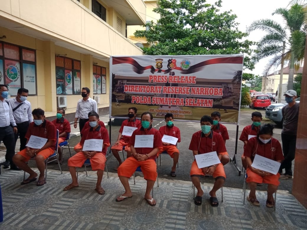 Sementara, Direktur Narkoba Polda Sumsel Kombes Pol Drs. Heri Istu dalam kesempatannya merelease barang-bukti dari masing-masing tersangka. Dari 7(tujuh) laporan polisi dengan jumlah tersangka 10 laki-laki dan 1(satu) orang wanita, yakni