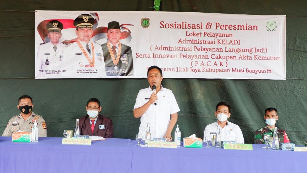 MATTANEWS.CO, MUBA – Dinas Kependudukan dan Catatan Sipil (Disdukcapil) Kabupaten Musi Banyuasin (MUBA) kembali meresmikan loket Administrasi Langsung Jadi (Keladi), Selasa, (7/12/2021) di Kecamatan Jirak Jaya. Peresmian loket KELADI di kecamatan paling muda Bumi Serasan Sekate ini adalah rangkaian layanan loket yang akan dibuka di seluruh kecamatan di Muba