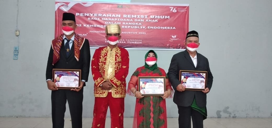 MATTANEWS.CO,PADANGSIDIMPUAN – Lapas Kelas IIB Padangsidimpuan (PSP) disaksikan Forkopimda memberikan remisi atau pengurangan masa hukuman terhadap 422 warga binaan, Selasa (17/8/2021) siang. Acara yang dilaksanakan di Aula Lapas Klas IIB PSP itu juga dirangkai dengan penyerahan penghargaan kepada tiga pegawai Lapas.