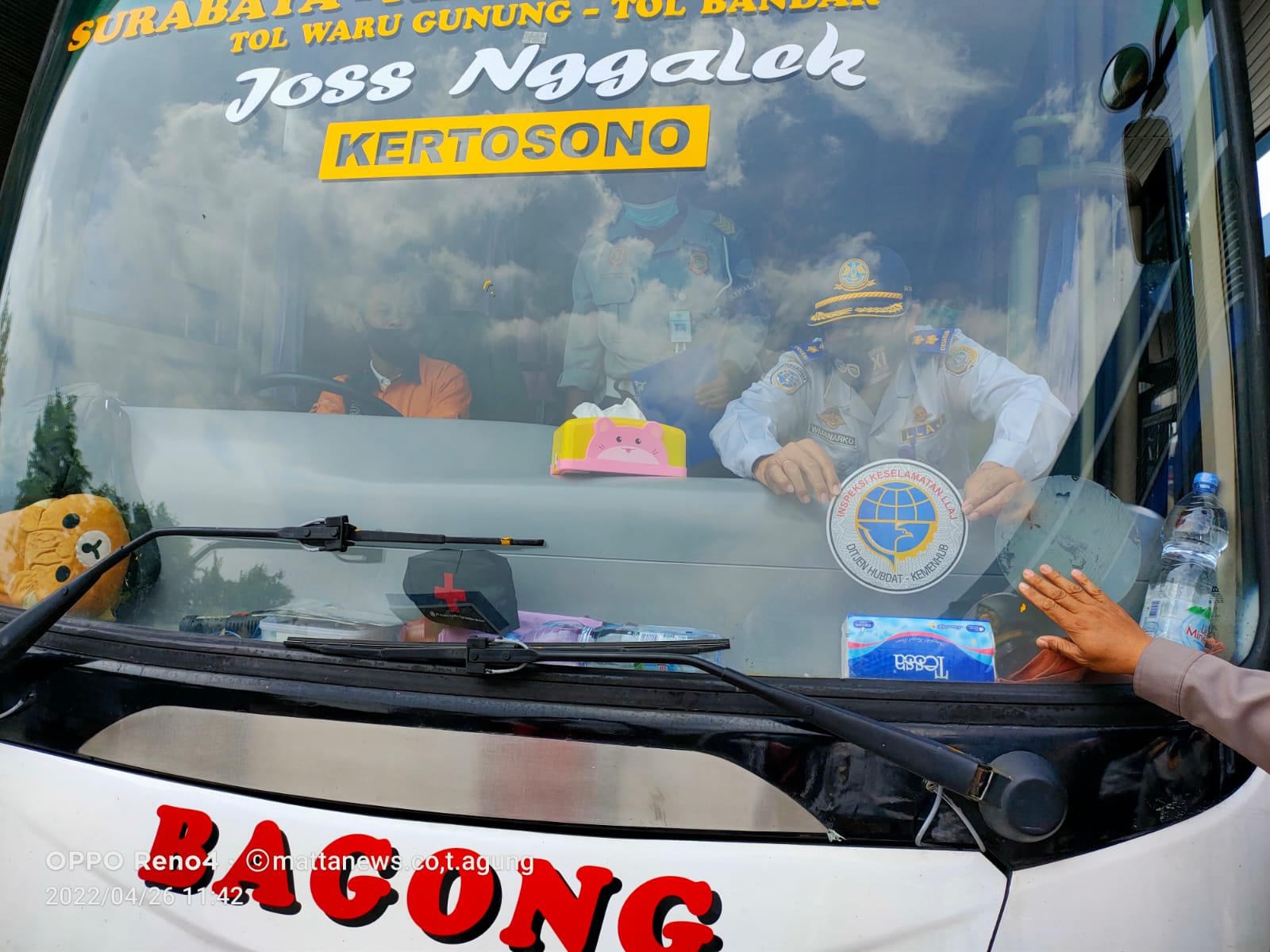 Adapun pemeriksaan terhadap bus diantaranya mengecek lampu kendaraan, sistem kemudi, maupun roda (Ban.red) kendaraan tersebut. Selain itu, mengecek surat kelengkapan kendaraan.