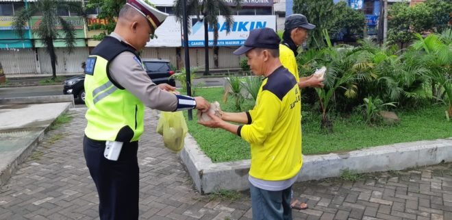 PALEMBANG, Mattanews.co – Untuk meringankan beban ekonomi masyarakat kota Palembang, ditengah situasi virus corona ini, Satuan Lalu Lintas Polrestabes Palembang membagikan makan siang, sembako kepada petugas kebersihan, pemulung dan buruh harian lainnya, di Jalan Sudirman, Selasa (07/04/2020).