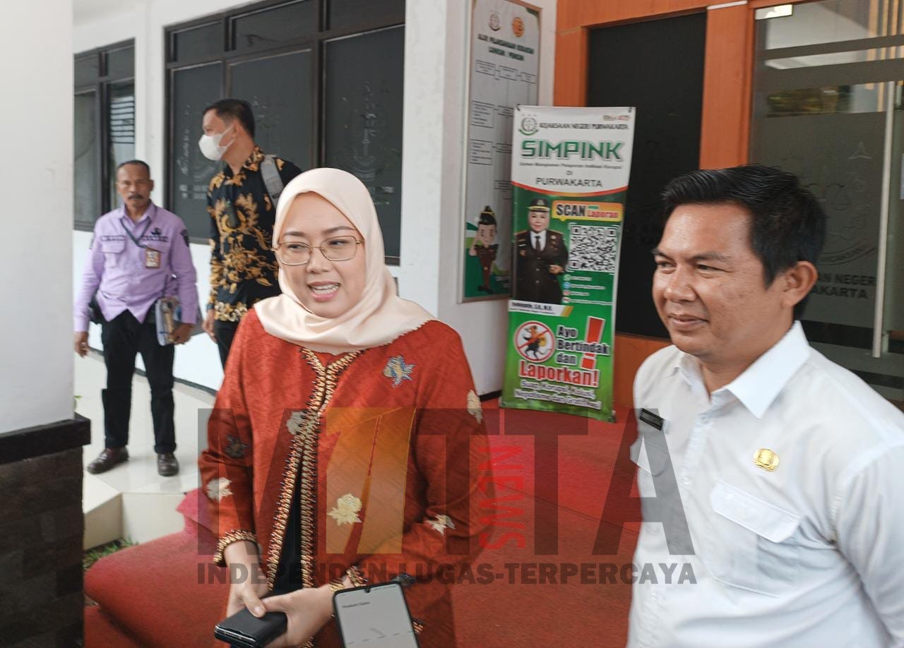 MATTANEWS.CO, PURWAKARTA – Selepas keluar dari Kantor Kejaksaan Negeri (Kejari) Purwakarta sekitar Pukul 12.00 WIB. Bupati Purwakarta Anne Ratna Mustika sudah ditunggu oleh puluhan wartawan di pintu utama kantor Kejari Purwakarta, di Jalan Siliwangi Purwakarta.