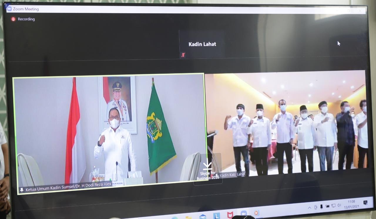 MATTANEWS.CO, SEKAYU – Bupati Musi Banyuasin Dr H Dodi Reza Alex selaku Ketua Umum Kamar Dagang dan Industri Indonesia (Kadin) Provinsi Sumatera Selatan melantik pengurus Kadin Kabupaten Lahat Periode 2021-2026 secara virtual, di Ruang Rapat Guest Griya Bumi Serasan Sekate, Rabu (13/01/2021).