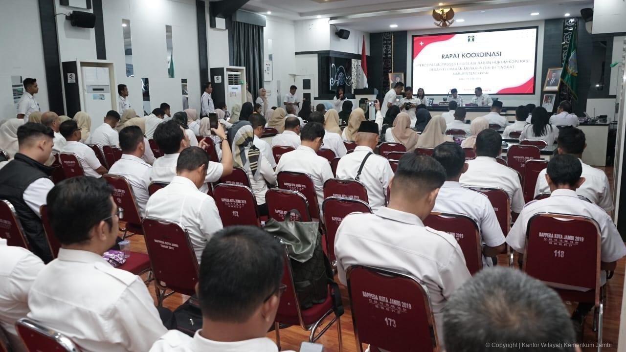MATTANEWS.CO, JAMBI – Kantor Wilayah Kementerian Hukum dan HAM (Kemenkumham) Provinsi Jambi terus berupaya memperkuat ekonomi berbasis komunitas. Hal ini diwujudkan melalui kegiatan Rapat Koordinasi (Rakor) percepatan pendirian Koperasi Kelurahan Merah Putih yang digelar di Aula Kantor Walikota Jambi, Rabu (18/6/2025).